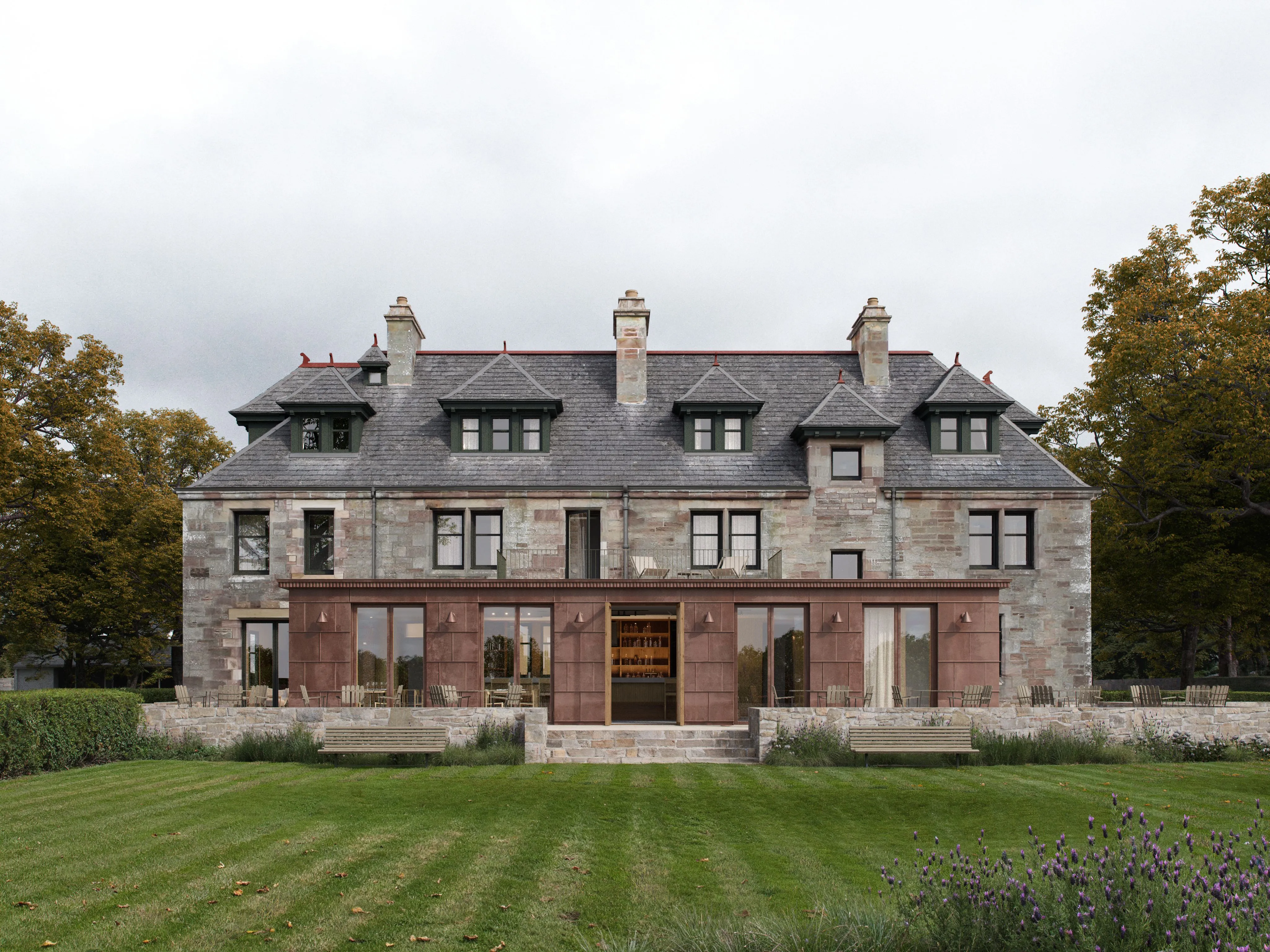 Over the years, Ross House has served many purposes: Originally a private home, it has been a hotel and a girls’ boarding school. During the Second World War it was used by the Norwegian Army. It then opened again as a hotel, before becoming a university of golf management. After standing empty for a few years, the manor house is once again welcoming guests. It contains nine apartments, renovated and decorated to meet modern Scandinavian standards of style and comfort.