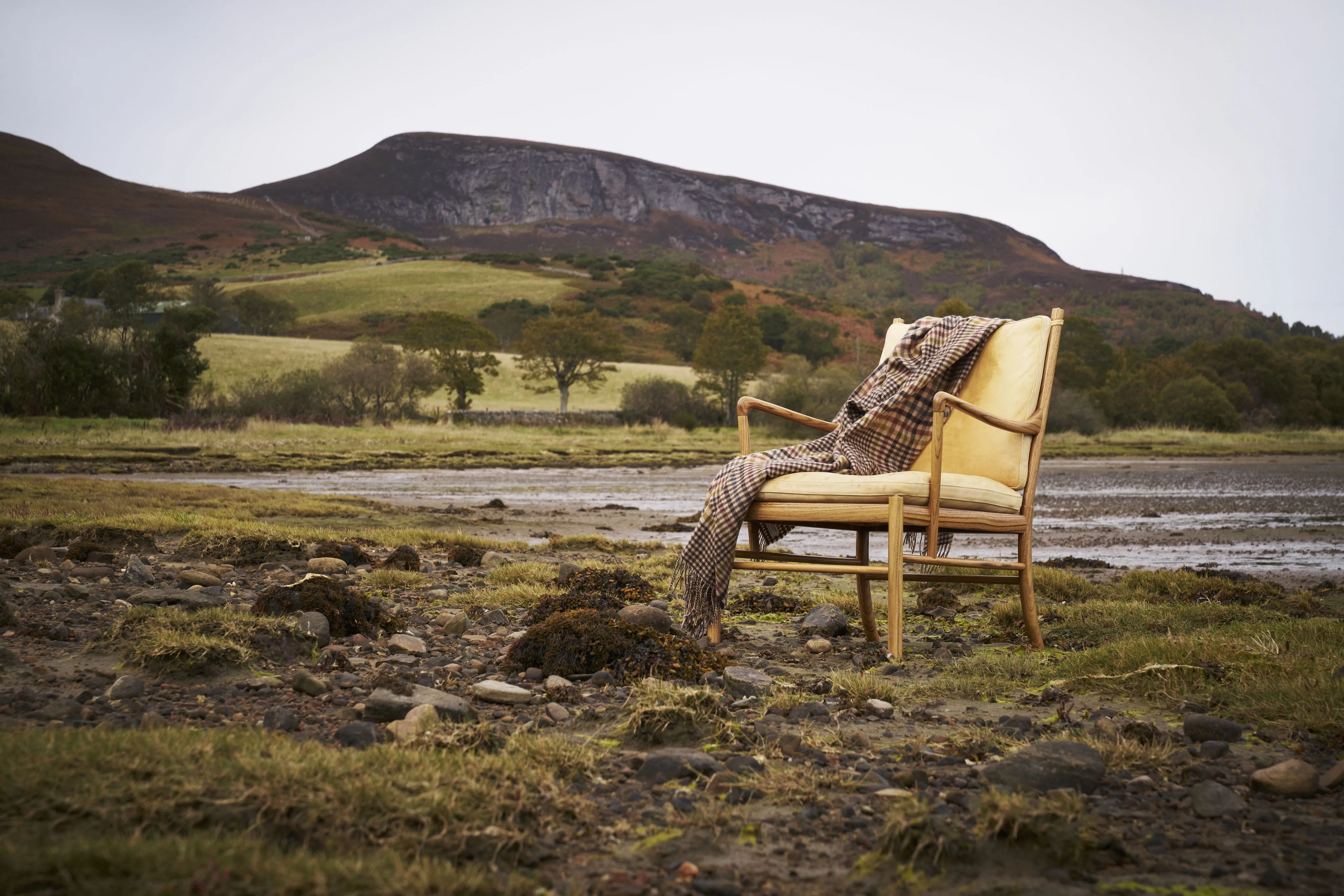Selected pieces of furniture by iconic Danish designers such as Arne Jacobsen, Hans Wegner, and Børge Mogensen are combined with Scottish antiques, throws, and other details to create a seamless blend of Scottish and Scandinavian design. Many of the rugs and carpets are sourced from Kasthall, the renowned Swedish manufacturer founded in 1889, whose uncompromising quality and use of premium natural materials such as wool and linen complement the character of Ross House’s interiors.